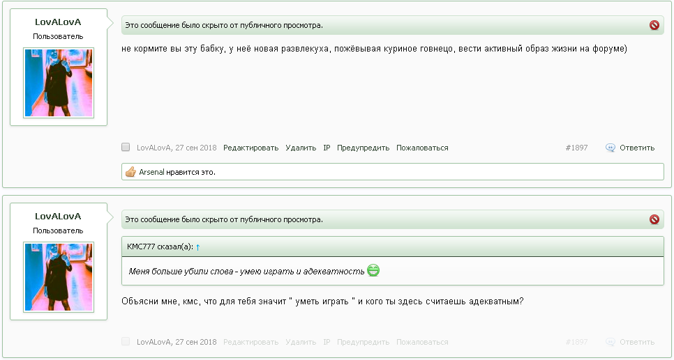 Arsenal, он же Сержант, она же Арина Трава - продлена блокировка на форуме на 1 месяц.