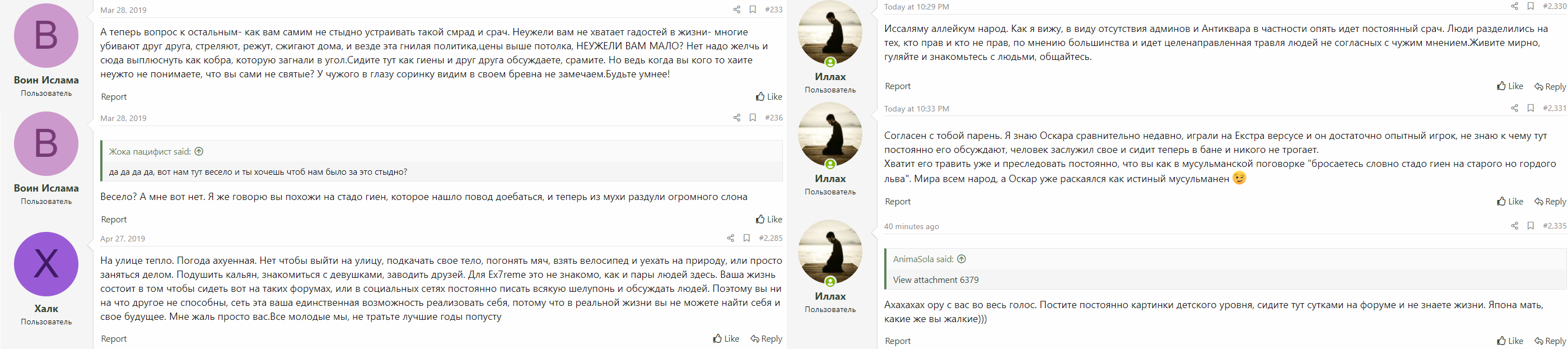 Ахах, опять Оскар стал занозой в твоей заднице)) Ну сидит и сидит с альта, тебя то каким боком это коснулось? Он уже как месяца 2 не сидит на форуме, ещё и бан как смотрел у него до октября, тихо и молча играет. Чем ты лучше тогда его,если ты как тёлка сидишь и стучишь что он обходит бан? Посмотри на свои косяки, в чужому глазу соринку видишь,а своём бревна не замечаешь.