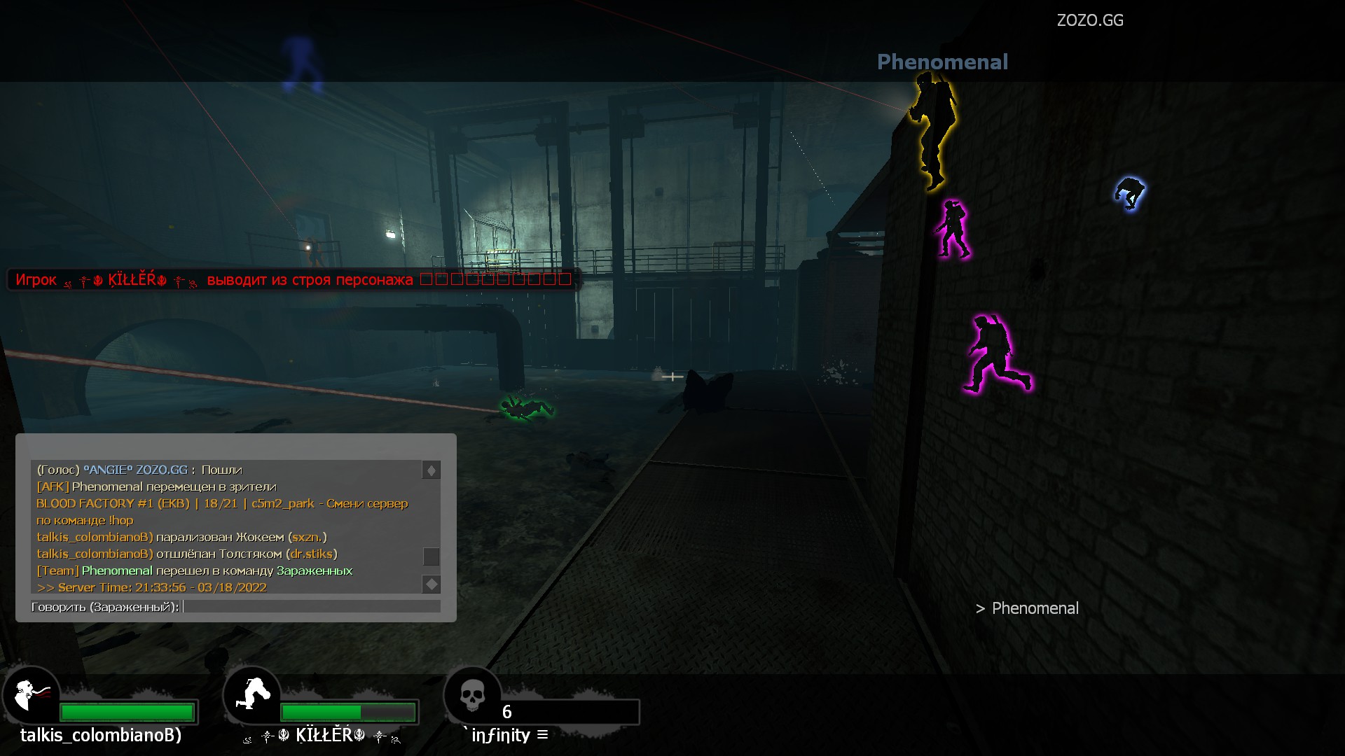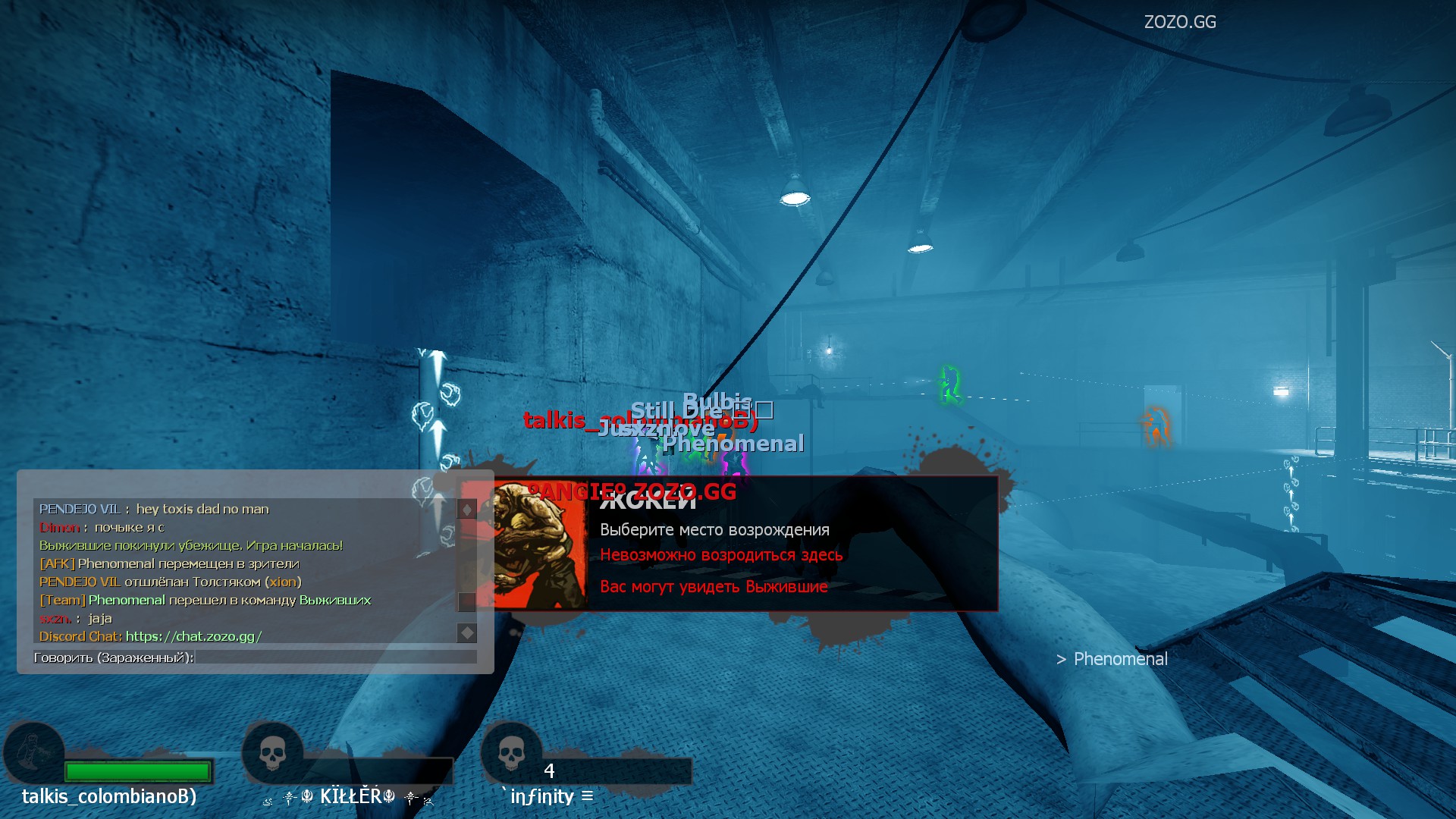 Наш многоуважаемый перуанский товарищ Phenomenal сегодня на карте Похоронный звон, ориентировочно в 19:10-30 по Москве зашел на сервер. Произошел баланс команд и его закинуло в команду Выживших. Затем, после переписки со своим товарищем, он два раза пытался зайти за команду Зараженных, что впоследствии, ему удалось сделать. Человек намеренно нарушил баланс команд ради игры со своим другом или по иной причине, о которой мне не суждено знать. Скриншоты его действий будут прикреплены внизу. Объясняю: скриншоты были сделаны уже после того, как наша команда сыграла за выживших.