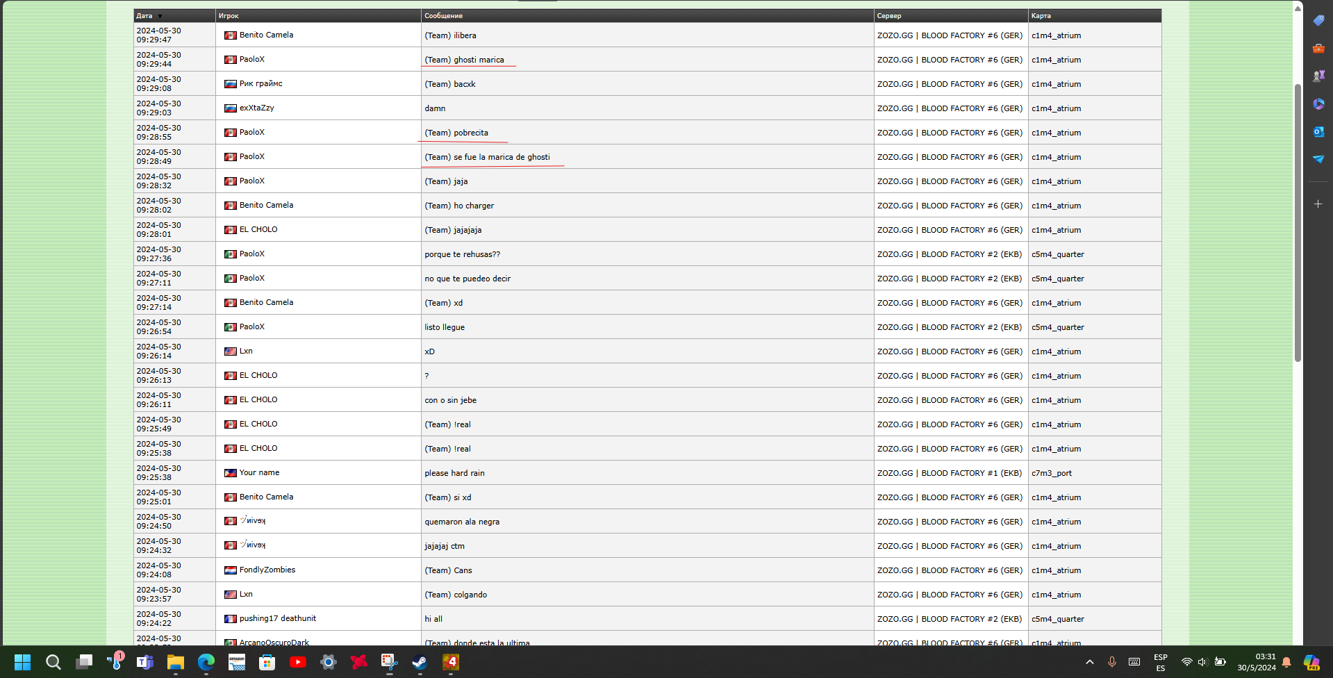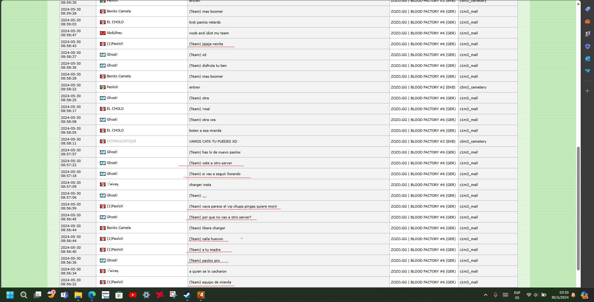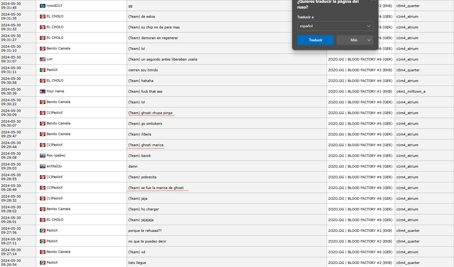 Hello, how are you doing! I don't know if it's the right yarn but since.. last night on Factory server #6. The player. Paolox after the team did not respond as he wanted started insulting the team and a player named User. Because he was holding up charger. I suggested that he go to another server (maybe not in the best way but I did) and instead of doing so, he started to take it out on me by insulting me, shooting me and for some strange reason, making comments Derogatory towards the LGBT community, with whom I somehow strangely relate and attack myself, as seen in the chat log and the demo. For obvious reasons, you may not understand it, but top players in South America will confirm without any problem the obvious toxicity with which this player seems to play. Attached screenshots and links.