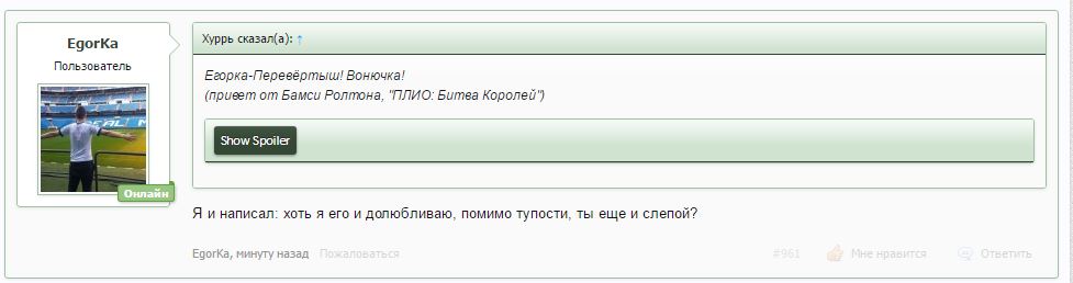 Егорка-Перевёртыш! Вонючка!Чтобы он опять говорил бред, и оскорблял людей не по делу? Не понимаю от чего тут тащится.