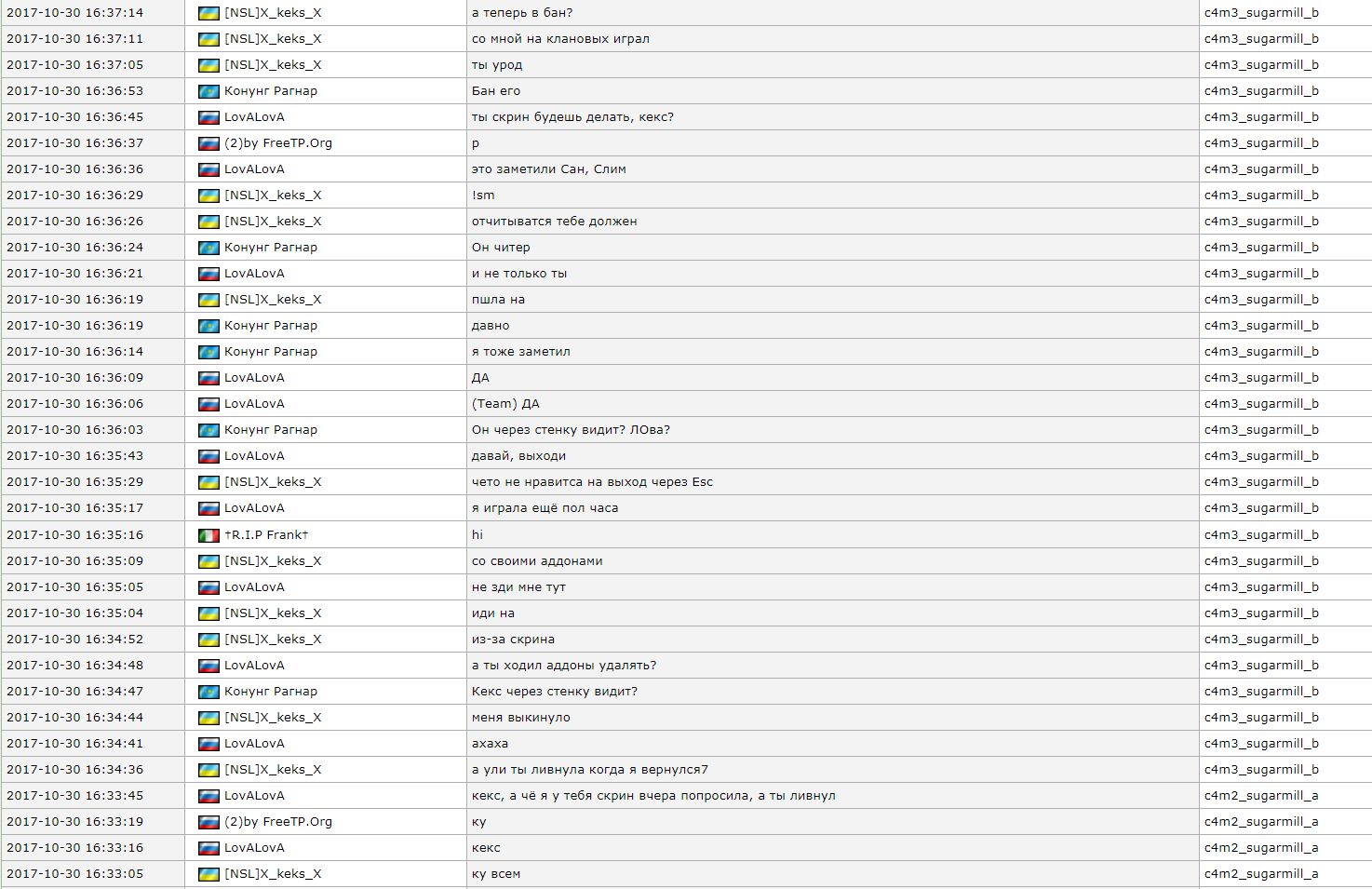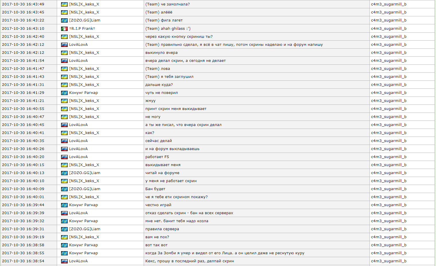привет, мой русинский друг(https://zozo.gg/hlstatsx/hlstats.php?mode=playerinfo&player=1323405) помогать я зарегистрироваться здесь и я писать здесь потому что я и моих друзей из перу постоянно выкинуть данные игрок (https://zozo.gg/hlstatsx/hlstats.php?mode=playerinfo&player=1144575 , https://zozo.gg/hlstatsx/hlstats.php?mode=playerinfo&player=1166900, https://zozo.gg/hlstatsx/hlstats.php?mode=playerinfo&player=1115339, https://zozo.gg/hlstatsx/hlstats.php?mode=playerinfo&player=1210563, , это очень плохо на мое настроении всегда оскорблять нас и стрелять данный игрок крик в микрофон оскорбления перу народ (https://zozo.gg/hlstatsx/hlstats.php?mode=playerinfo&player=1118197, https://zozo.gg/hlstatsx/hlstats.php?mode=playerinfo&player=1108263) спасибо голубой русский