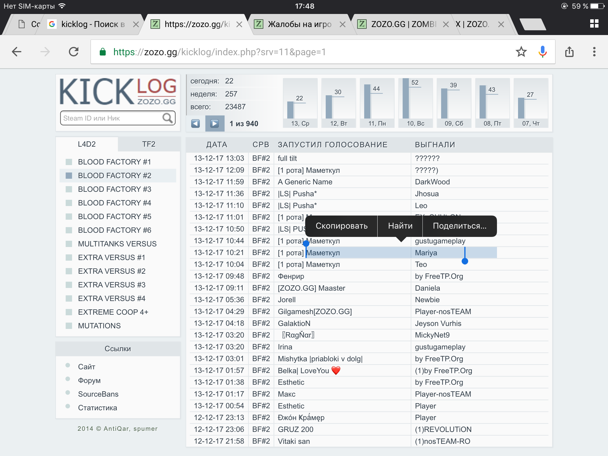 Так же я просила кикнуть игрока, но просьбы были проигнорены