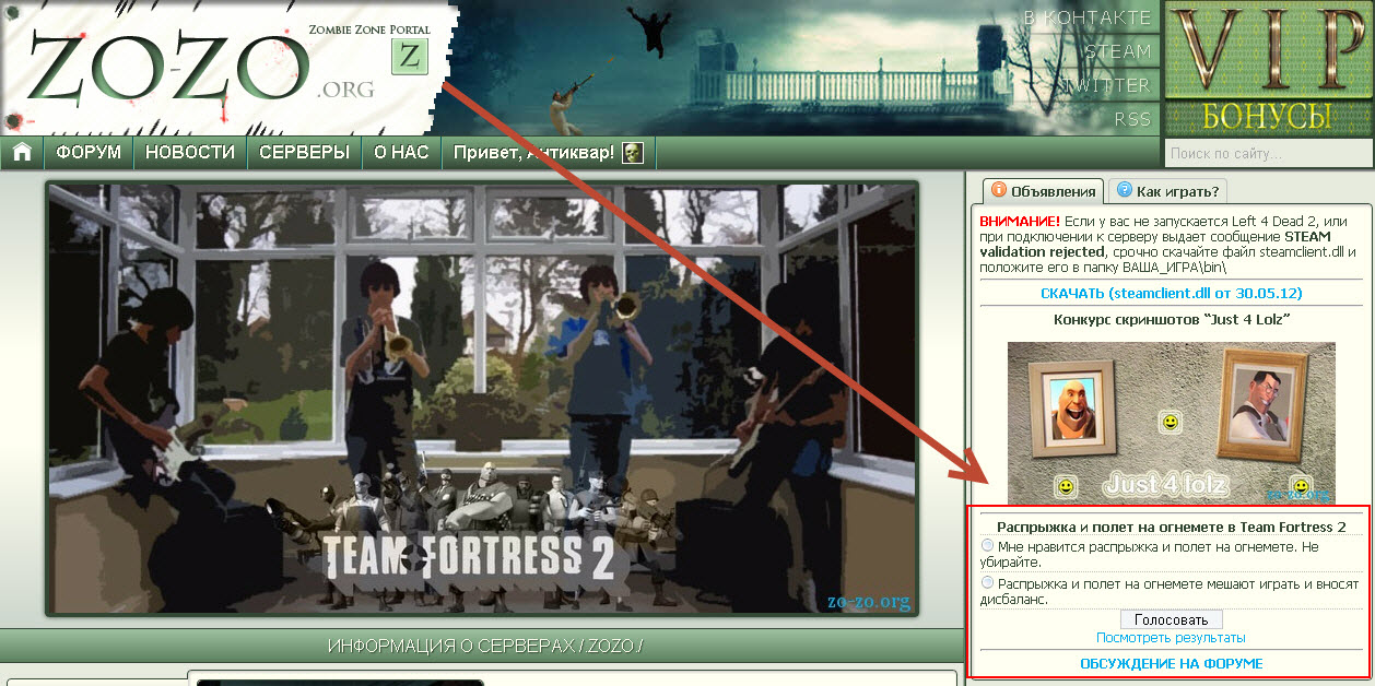 На серверах /.ZoZo./ Team Fortress 2 работает распрыжка и полет на огнемете. Решается судьба существования этих особенностей на сервере. Выскажите свое мнение в развернутом виде.
