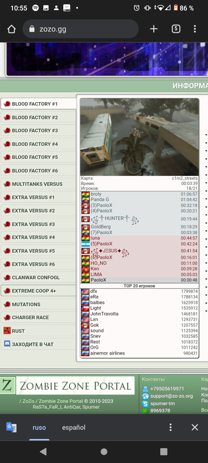 Пропали сервера ZOZO BLOODY FACTORY #1 и #2