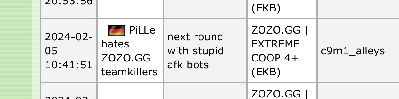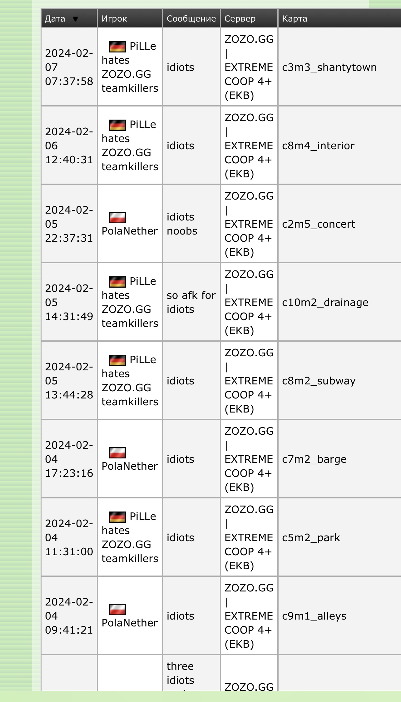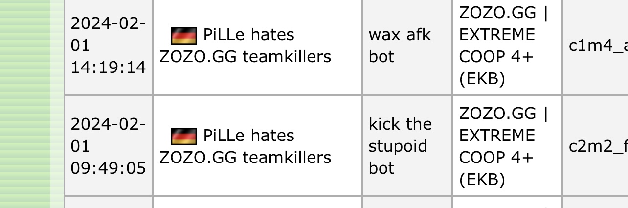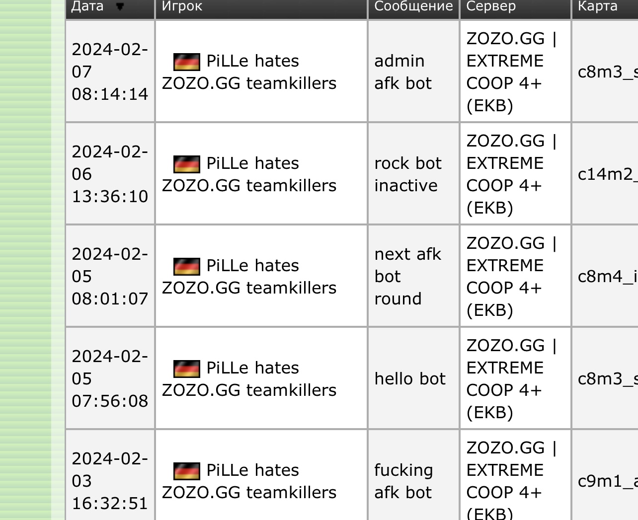Игрок PiLLePaLLe [ZOZO.GG] (https://stats.zozo.gg/hlstats.php?mode=playerinfo&player=3155633) который был представлен выше , чувствовал безнаказанность , частенько мне писали что он мог в начале карты кинуть молотов в убегу .