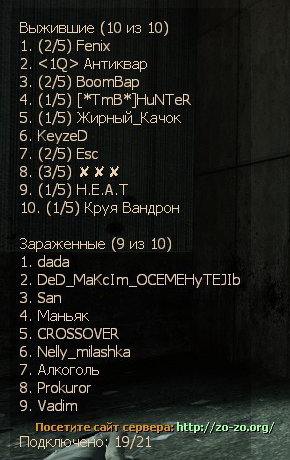 Статусы показывает перед ником игрока. Команде выживших не видны статусы зараженных, и наоборот. Благодаря командным статусам, выжившим будет проще определить, кто стал ЧБ, а зараженным проще строить атаки на основе данных о том, кто в режиме возрождения и готов атаковать.