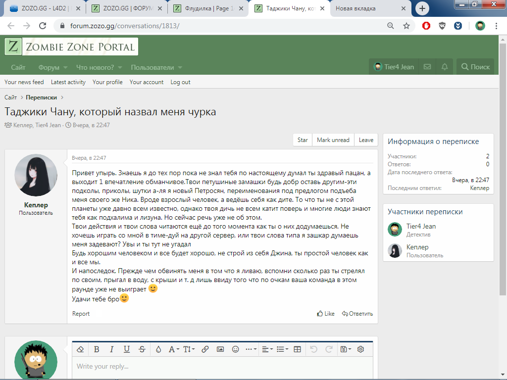 А возвращаясь к тебе, ося, ты это своё "бро", "с уважением", "друг" - брось. Не "бро" ты мне, вошка тёмнопопая ;3