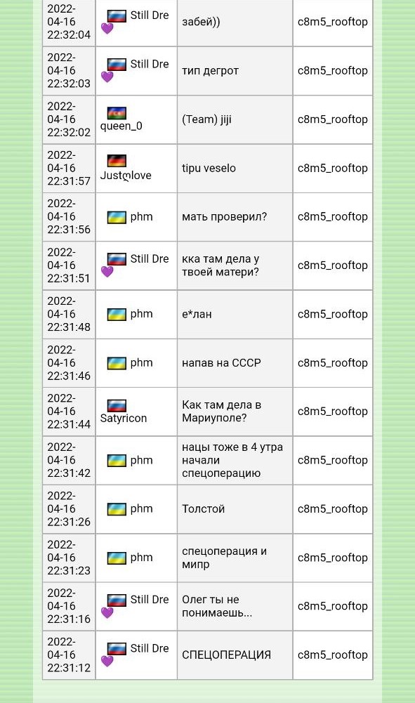 Давай с тобой поговорим логически. Если к ней идет такое отношение, значит есть за что, верно? И я тебе отвечу "в обратку". С ее стороны так же некрасиво относиться ко мне с пренебрежением, постоянно мне давать какие-то предупреждения о бане, якобы за какие-то провокации, которые ей постоянно мерещатся, ведь мы мы с ней раньше дружили. Не так ли? Когда на сервере происходит баланс и меня кидает к ней в команду, нормально с ее стороны говорить в общий текстовый чат "забирайте его обратно"? То, что у нее есть какие-то комплексы, недостатки и так далее, не нужно их срывать на мне. Когда я молчу в игре, она продолжает меня провоцировать предупреждениями и банами. Естественно, я буду отвечать.
