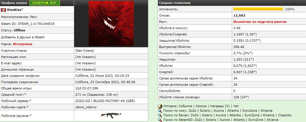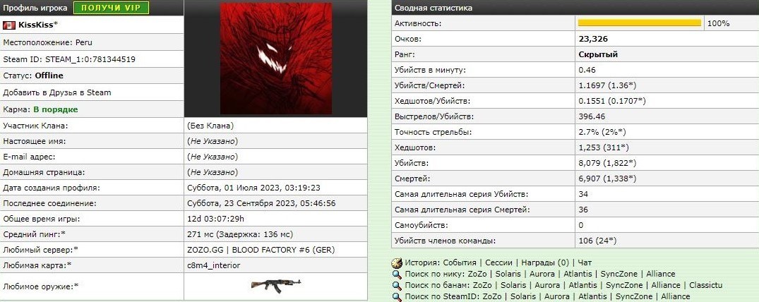 Зафиксирован вторичный аккаунт: https://stats.zozo.gg/hlstats.php?mode=playerinfo&player=3094723