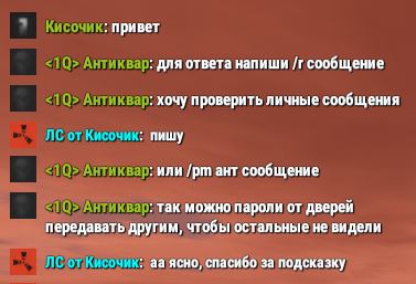 /pm НикИгрока Сообщение - отправить личное сообщение игроку.