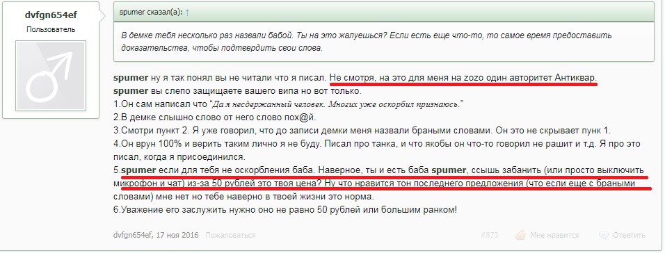 3. Отмазка из разряда «сам дурак» здесь вряд ли сработает. Факт того, что nick.uhd нарушал правила и пишет с ошибками, ничего не значит. Он предоставил доказательства в виде демок и выписок с чата. Их и изучайте.Он же предлагает вам верить на слово.