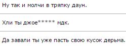 nick.uhd, а теперь абстрагируйся от Tier4 Jean'а и ответь мне на один вопрос. Как может гнать на мат в великом и могучем человек, который и двух слов подряд правильно на этом языке написать не может? Ладно, хрен с ними, с запятыми — это даже пытками не исправить, — но кто тебя вообще учил мягкий знак к каждому глаголу добавлять? Зачем? Мне на самом деле очень интересно это узнать. Когда я читаю твои сообщения, у меня в голове даже акцента подходящего не возникает. Я вообще без понятия, как мне это воспринимать.